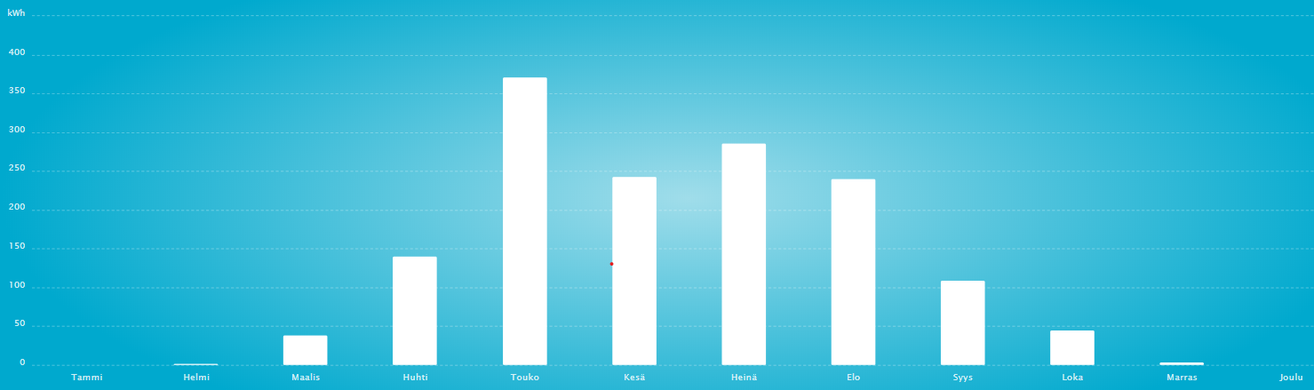 Älysäätö kuormanohjausjärjestelmä on kytketty ohjaamaan ylijäämäenergia päärakennuksen 270 litran lämminvesivaraajaan. Kesäaikana käyttöveden lämmitys hoitui lähes kokonaan ylijäämäenergialla.